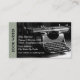 Os cartões de visitas retros do escritor são uma exposição antiquado da máquina de escrever na parte dianteira e em sua informações de contacto básica em um modelo que você pode personalizar em linha. Projetado para um escritor, um journalista, ou um escritor do livro
