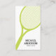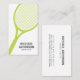 Um tênis mínimo de ou cartão de visita de tênis com uma raquete verde tênis na frente. Nome personalizável, título / nome comercial e informações de contato no verso. Um design ousado e moderno.
