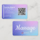 Descubra os modernos Modelos Terapistas de Massagem para Cartões de visitas elegantes e profissionais. Personalize seu próprio design personalizado com informações comerciais e código QR. Escolha entre as opções padrão de canto 3,5 x 2,0, as bordas arredondadas disponíveis. Ideal para massagem, reiki, reflexologia, quiroprática e profissionais de bem-estar holístico.