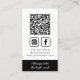 Fita de Monograma Preta e Branca com Cartão de visita Vertical de Slogan... A frente de nosso clássico cartão de visita preto e branco apresenta uma elegante coroa botânica bordando suas duas iniciais de monograma em tinta preta em um fundo branco. Seu nome e título (ou nome da empresa) aparecem em tinta branca em um retângulo preto próximo ao fundo do cartão de visita, dando uma estrutura autoritativa para equilibrar a delicada coroa de folhas. Na parte traseira do cartão está o seu número de telefone, informações de contato de mídia social, endereço do site e código QR, vinculando-se a informações adicionais. A seção preta na parte inferior contém seu lema de negócios ou slogan. O texto de exemplo mostra "Sempre pegue a estrada alta" na tipografia de scripts brancos. Todo o texto e o código QR podem ser facilmente revisados no modelo de personalização.