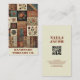 Promova seu negócio de roupas, costura ou artesanato feitos à mão com esta charmosa colcha de teracotta e cartão de visita de retalhos. Apresentando um layout geométrico quente, florais de aquarela macia e um espaço para seu código QR, ele é perfeito para mostrar sua marca exclusiva. Ideal para primavera, verão, outono e eventos de outono. Projetado para costureiras, hobbistas e qualquer um que crie com amor.