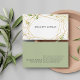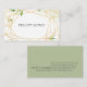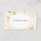 Os cartões de visitas botânicos do chic apresentam seu nome ou nome de empresa cercado por uma borda geométrica ouro acentuada por folhas de cor aquática verde minúscula. Adicione as informações de contato do seu cheio à parte de trás em preto-e-branco pálido. Uma escolha única e elegante para designers paisagísticos, arquitetos paisagistas, floristas e empresas ecológicas.