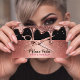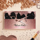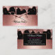 Faça uma declaração ousada e inesquecível com este cartão de visita de alta-moda! O design cria um contraste dramático com um fundo preto no topo e um campo deslumbrante de brilho dourado rosa na parte inferior, ligado por um efeito de gotejamento metálico rosa de na moda. Um par de tesouras realisticamente douradas rosa toma palco central, fazer perfeitamente claro que você é um profissional na indústria da beleza. Esta placa chic, de dois tons, é o acessório final de uma marca moderna e luxuosa. Personalize seu nome (por exemplo, "Melanie Parker") e todos os detalhes de contato para uma atualização instantânea de marca!
