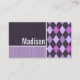 Cartão De Visita Teste padrão roxo de Argyle