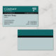Um modelo de cartão de negócios na moda claro com um conector de cor e uma banda preta. O logotipo usado na modelo é de uma das fontes de imagem do Zazzle que pode servir como uma característica decorativa em si mesma ou pode ser substituído pelo seu próprio logotipo. O design de modelo básico é repetido na parte traseira que pode ser deixado como está ou usado para informações adicionais. Adequado para muitos tipos de negócios.