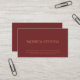 Um cartão de visita vermelho escuro profissional com texto simples e simples em ouro.