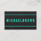 Cartão De Visita Texto Teal Masculino no Fundo das Cinzas Escuras