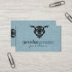 Tons azuis pastel simples e elegantes dão efeito de textura de linen, modelo de cartão de negócios totalmente personalizável. Sotaque floral preto. Ênfase de fonte rosa sugerida. Disponível em outros produtos.