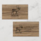 Um fundo de imagem de textura de madeira rústica com uma ilustração de veado vintage. Um design com charme rústico. Cartão de visita ideal para caçadores, empresas de abastecimento ao ar livre, paisagistas, fornecedores de madeira ou quaisquer empresas que possam estar relacionadas com a floresta, o exterior, etc. Uma maneira simples e profissional de apresentar sua empresa. Personalize seus detalhes para criar seu próprio cartão de visita corporativo exclusivo.