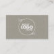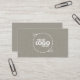 Cartão de visita de fonte elegante e clássico com script branco com logotipo personalizável na frente. Textura sutil e minimalista de cinza de textura falsa em tecido.