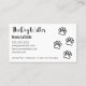 A unique professional dog walker business card in black and white. The paw print filled with hearts that shows how much you care about your canine clients. On the front, your business name in a playful script and lists your services and business location. On the back, your name and contact information: phone, email, website, social media and more paws. Modern, professional and a little playful. Black and White.