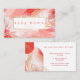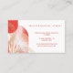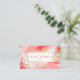 Cartão de visita moderno e elegante para uma ampla gama de negócios. O design apresenta nossa bela arte abstrata moderna em tinta aquarela rosa e vermelha com veias douradas marmorizadas em falso ouro. Folhas de palmeira brancas decoram o canto. Os tons suaves de rosa felpudo, coral e rosa-avermelhado criam um visual elegante e moderno. Personalize com o nome da sua empresa e monograma. O verso apresenta nossa bela arte abstrata moderna em tinta aquarela rosa e vermelha criada em formas de arco com elementos de arco-íris dourado. Arte original da Moodthology Papery