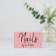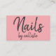 Esta cartão de visita de tipografia simples e moderna é perfeita para qualquer profissional. Ele apresenta uma fonte colorida e elegante e preta, escrita à mão, em cima do fundo rosa-borbulhlegum minimalista; o design perfeito para atrair potenciais clientes. É uma escolha excelente para técnicos de unhas. ***NOTA DE DESIGN IMPORTANTE: Para qualquer solicitação de design personalizada, como solicitações de correspondência de produtos, alterações de cor, mudanças de posicionamento ou qualquer outra solicitação de alteração, clique no botão "MENSAGEM" ou envie um e-mail ao designer diretamente em lafemme.art@gmail.com. Você pode até enviar um e-mail para ela solicitando um design completamente personalizado e novo.