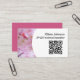 Cartão de visita de cereja florescente com um lado de trás rosa para os tradutores freelance japoneses. Um cartão de visita minimalista para tradutores freelance e outros tipos de freelancers, trabalhadores remotos e nômadas digitais. Você pode adicionar o URL do seu site ou de qualquer perfil on-line onde exibe um portfólio de amostras de trabalho para clientes e fazer com que ele seja exibido como um código QR antes de solicitar seu cartão de visita moderno e memorável para anunciar sua empresa. Não se esqueça de adicionar seu nome e o serviço de assinatura que você está oferecendo como freelancer. Marca elegante e marketing com vibrações botânicas primavera. Design floral e moderno. Tradutor e cartão de visita de intérprete.