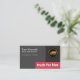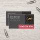 No verso, utiliza-se o mesmo design. No topo estão o nome da sua empresa, os detalhes de contato e uma opção de slogan para anunciar seu serviço. À direita está o logotipo dourado com um slogan adicional, logo abaixo, na guia vermelha.