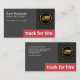Um simples design de coluna. A coluna de cinzas leves à esquerda tem o seu nome prestigiado, contato telefônico e uma opção de slogan. À direita, numa camada mais escura de cinzas, está um logótipo de caminhão de ouro que podem ser utilizados. Um slogan vermelho de tamanho excessivo "caminhão para alugar" está logo abaixo, em uma guia vermelha.