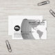 No verso, num cobrir branco, o logótipo prateado está no topo, seguido do seu nome, dos seus contatos e de uma legenda de slogan para divulgar os seus serviços.