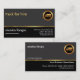 No verso, utiliza-se um tema design semelhante. No canto superior direito está o logo dourado familiar. Seu nome prestigiado está na extremidade oposta da placa com uma opção de slogan logo abaixo. Na coluna cinza abaixo estão o nome comercial e os detalhes de contato.