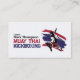 Um design ousado Muay Tailandês e Kickboxing apresentando uma ilustração dinâmica de caça em greve de médio, realçado sobre vermelho e azul de tinta e inspirado na bandeira tailandesa. A forte e angustiada tipografia reforça a estética do esporte de combate, enquanto o inverso inclui uma silhueta de chutes limpa, juntamente com detalhes do treinador, serviços e informações de contato. Uma escolha notável para treinadores Muay Thai, instrutores de kickboxing e profissionais de malhações de combate.