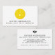 Cartão de visita simples para treinadores de picleball ou para aqueles em um negócio de picleball - clubes, times, diretores de torneio, etc. - ou use como cartão de chamada para que o pessoas possa entrar em contato com você para jogar. O lado frontal apresenta uma bola de picleball amarela - mantenha isto ou substitua pelo seu próprio logotipo. Adicione seu nome, serviços, informações de contato, identificadores de mídia social e muito mais.