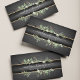 Cartões de visitas de rico elegantes com fundo preto rústico, uma borda brilhante em ouro na moda, verde ouro e aquarela, script de assinatura e um modelo de texto profissional que é fácil de personalizar. Estas podem ser utilizadas para diversas profissões, incluindo cabeleireiros, maquiadores, floristas e muito mais.