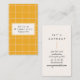 Se você está procurando um cartão de visita perfeito e único, este é para você!! Um modelo de cartão de negócios único e retro-boêmico laranja-branco. À medida que apresenta um plano de fundo amarelo alaranjado comum e faixas de verificação desenhadas à mão com um único e elegante script preto tipo a. Com o título de vintage escrito ou modelo profissional. E no verso temos os ícones das mídias sociais desenhados com outras informações como site e informações de contato. Você pode personalizá-lo simples e facilmente clicando no botão Personalizar azul e, em seguida, alterar as informações. O que você está esperando! Vá em frente e pegue-o, nós garantimos a incrível qualidade e o transporte rápido.