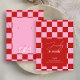 Trendy Retro Jewelry Display Cards with groovy checkered background in red and pink and stylish fonts. This modern earrings and necklaces holder card design has two hole and necklace slits - please note these are markers only and are not pre-punched, you can keep / remove the markers that you need. Add your business name or logo, contact details and create your custom jewelry display cards for your artisan jewellery boutique.