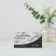 Este elegante cartão de visita tem uma laje de mármore branco no canto superior direito com uma curva suave contra um fundo de carvão escuro.