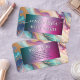 Belo cartão de visita de maquiagem artística. Com letra de tipografia clássica, química, contemporânea, sobre uma turquesa aquática luxuosa e glamourosa, rosa, roxo, azul lacrimogêneo e fundo metálico dourado. Clique em 'Personalizar' para encontrar o modelo pronto para ser personalizado com seu nome comercial, profissão e informações de contato exclusivos e texto de sua escolha. Este design específico, bonito e único foi criado para aqueles que apreciam designs sofisticados, clássicos e ornamentados.