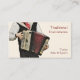 Um tocador de acordeão vestido de fantasia folclórica com um acordeão de foles vermelhos. Este modelo de cartão de negócios tem uma imagem de estilo aquarela feita a partir de uma foto de um grupo folclórico francês.