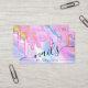 Esta cartão de visita de tecnologia de unhas giro e glamourosa é perfeita para uma na moda e profissional de negócios. Ele apresenta pingos grossos de brilho amarelo-arco-íris de cor veloz com impressão falsa sobre um fundo holográfico iridescente. A tipografia é uma elegante escrita cursiva com uma fonte serif moderna a corresponder. O esquema de cores inclui rosa, pêssego, azul, roxo, amarelo e coral. É chic, bonito, exclusivo e luxuoso; a maneira perfeita de anunciar sua empresa e estilizar seu marketing e material de propaganda para seus clientes. ***NOTA DE DESIGN IMPORTANTE: Para qualquer solicitação de design personalizada, como solicitações de correspondência de produtos, alterações de cor, mudanças de posicionamento ou qualquer outra solicitação de alteração, clique no botão "mensagem" ou envie um e-mail ao designer diretamente em lafemme.art@gmail.com. Você pode até enviar um e-mail para ela solicitando um design completamente personalizado e novo.