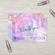 Este cartões de agradecimentos de clientes comerciais giro e glamouroso é perfeito para os negócios modernos e modernos. Ele apresenta pingos grossos de brilho amarelo-arco-íris de cor veloz com impressão falsa sobre um fundo holográfico iridescente. A tipografia é uma elegante escrita cursiva com uma fonte serif moderna a corresponder. O esquema de cores inclui rosa, pêssego, azul, roxo, amarelo e coral. É chic, bonito, exclusivo e luxuoso; a maneira perfeita de anunciar sua empresa e estilizar seu marketing e material de propaganda para seus clientes. ***NOTA DE DESIGN IMPORTANTE: Para qualquer solicitação de design personalizada, como solicitações de correspondência de produtos, alterações de cor, mudanças de posicionamento ou qualquer outra solicitação de alteração, clique no botão "MENSAGEM" ou envie um e-mail ao designer diretamente em lafemme.art@gmail.com. Você pode até enviar um e-mail para ela solicitando um design completamente personalizado e novo.