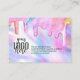 This girly and glamorous business logo customer thank you card is perfect for the modern and trendy business. It features faux printed sparkly unicorn rainbow color thick glitter drips on top of a holographic iridescent background. The typography is an elegant cursive script with a modern serif font to match. The color scheme includes pink, peach, blue, purple, yellow, and coral. It's chic, pretty, unique, and luxurious; the perfect way to advertise your business and stylize your marketing and advertisement material for your customers.