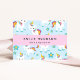 Cartões de visitas bonitos, divertidos e adoráveis com unicórnios e flores. Design moderno e moderno, perfeito para crianças que brincam com centros de brincadeira, parques de brincadeiras, centros de atividades, assistência à criança, assistência ao dia, babás e babás.