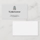 Um cartão de visita simples e minimalista com uma pequena ilustração de uma cadeira de safra: perfeito para atividades como estofador, reparo de móveis, decoração de interiores, compro de antiguidades, preparação de casas.
