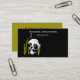 Urso panda preto e branco sentado entre os caules de bambu verdes em um pequeno bosque. Fundo preto. O verso do cartão tem um fundo verde-oliva e um lugar para todos os seus detalhes. Personalize de acordo com o seu gosto. Excelente para biólogos, zoólogos, veterinários ou qualquer outra pessoa que trabalhe com animais selvagens. Poderia também funcionar para as empresas temáticas asiáticas.