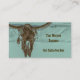 Este modelo de cartão de negócios rustico ocidental apresenta um design de crânio de vaca de cowboy. O estilo Vintage, o velho oeste selvagem, inspirou um animal de fazenda antigo. Imagem copyright Marg Seregelyi Fotografia.