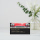 Carro desportivo vermelho para vendedores de automóveis ou proprietários de concessionários. Personalize com nome, nome comercial, sua foto e informações de contato em texto dourado em preto.