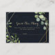 Este verde-azul-dourado geométrico adivinha quantos cartões de jogo são perfeitos para um simples chá de panela ou chá de fraldas. A design apresenta lindas folhas verdes pintadas manualmente em um fundo azul escuro, enfeitando uma armação geométrica dourada.