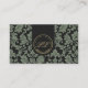 Cartão de visita elegante, ao estilo vintage, com vibrações escuras na academia, com um padrão de cinza verde e escuro mudo nas costas e um monograma de ouro. Ideal para herbalistas e donos de botecas ou de lojas ocultas à procura de uma aparência clássica e refinada que reflita seu artesanato natural e místico.