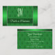 Cartão De Visita Verde Elegante com profissional de padrão monogram