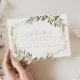 Este verde-ouro geométrico adivinha quantos cartões de jogos são perfeitos para um chá de panela ou chá de fraldas moderno. A design apresenta uma bela estrutura geométrica dourada com folhas verdes elegantes.