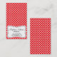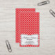 Cartões de visitas femininos bonitos. Bolinhas vermelhas contínuas da cor e do branco do fundo. Quadro elegante do suporte que contem seus nome e informações de contacto.