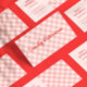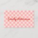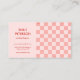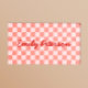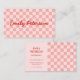 Este cartão de visita de estilo retroativo apresenta um fundo de verificação cor-de-rosa e uma fonte vermelha contrastante. Adicione as informações da sua empresa, mídia social ou site na parte traseira do cartão.