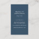 Os cartões de visitas verticais elegantes apresentam uma borda redonda de folhagem azul de cor d'água que envolve dois campos de texto personalizados para seu nome e nome comercial ou profissão. Adicione suas informações de contato ao verso em branco em um fundo azul de porto rico