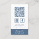 Solha do Monograma Azul com Cartão de visita Vertical do Slogan... A frente de nosso único cartão de visita azul empoeirado apresenta uma elegante coroa botânica bordando suas duas iniciais de monograma em tinta azul sobre um fundo branco. Seu nome e título (ou nome da empresa) aparecem em tinta branca em um retângulo azul empoeirado que fica na parte inferior do cartão de visita, dando uma estrutura autoritativa para equilibrar a delicada coroa de folhas. Na parte traseira do cartão estão o número de telefone, informações de contato de mídia social, endereço do site e código QR que vinculam a informações adicionais. A seção azul empoeirada na parte inferior contém seu lema de negócios ou slogan. O texto de exemplo mostra "Sempre pegue a estrada alta" na tipografia de scripts brancos. Todo o texto e o código QR podem ser facilmente revisados no modelo de personalização.