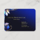 Visualmente impressionante este design de vidro manchado botânico fluido em tons de azul turquesa e azul com acentos dourados, situado em um fundo azul meia-noite gradiente - certifique-se de que seus clientes nunca esqueçam seu cartão - Perfeito para galeria, loja de presentes de cottage, spa e beleza, todos os profissionais, elegante, simples, artístico, gestão, administração, temas de trabalho informal. Esta é uma obra original © por WhimsicalArtwork™