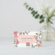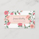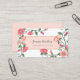 Cartão de visita floral para um designer de interiores, comprador de moda, estilista de eventos, maquiador, cabeleireiro, blogueiro, autor de romance, e muito mais, com um design floral inspirado na vintage em tons de rosa e de pêssego. Vinhas verdes com flores cor-de-rosa e botões de flores esticam-se através do bonito cartão de visita para enquadrar o seu nome e título.