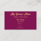 Um bar de ouro no topo, um bar preto no fundo, e um bloco colorido de vinho no centro fazem este cartão de visita. Substitua as iniciais pela marca ou logotipo na frente. A parte de trás é de cor de vinho, com muito espaço para suas informações comerciais. Muito nítido, elegante, profissional e facilmente adaptável a uma grande variedade de empresas.