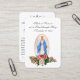 Esta é uma imagem católica tradicional da Virgem Abençoada Maria, Nossa Senhora de Graça com um buquê de rosa de flores abaixo e dois anéis de casamento dourados. Todo texto e fontes podem ser personalizados. Seus convidados adorariam receber lembranças como esta!